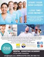 Becoming an Expanded Functions Dental Assistant as the State of Florida requires Certification. We at Dental Assisting Academy of the Palm Beaches offer an "Accelerated education", simply putting to rest any doubt in this program, knowing our background coming from a generation of hard working ethics, that nothing comes easy and nothing comes free.
